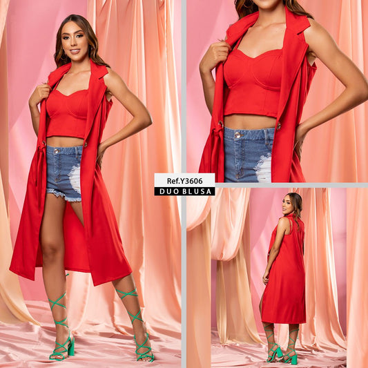 Y3606 BLUSA CHALIS DIAGONAL ROJO