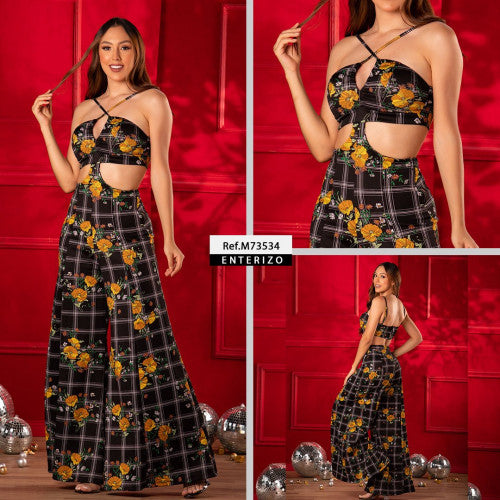 M73534 ENTERIZO SCUBA ESTAMPADO AMARILLO