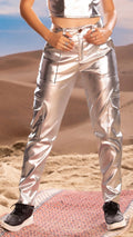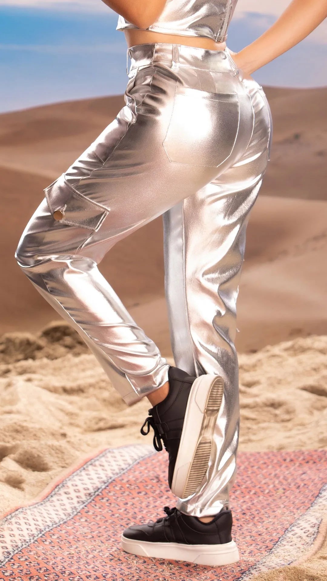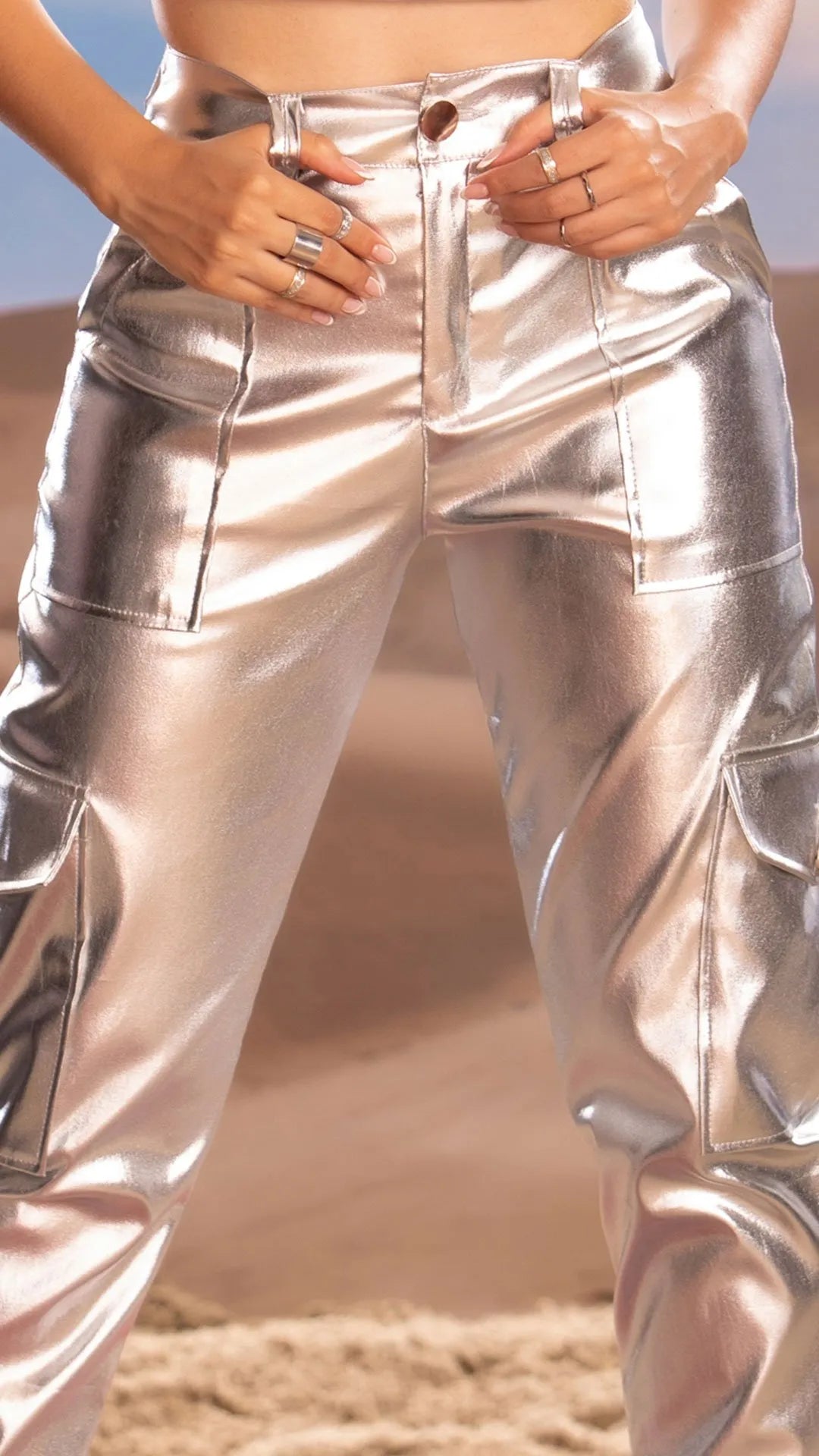 Te presentamos nuestro pantalón dorado con bolsillos decorativos elaborado en tela bengalina.