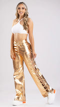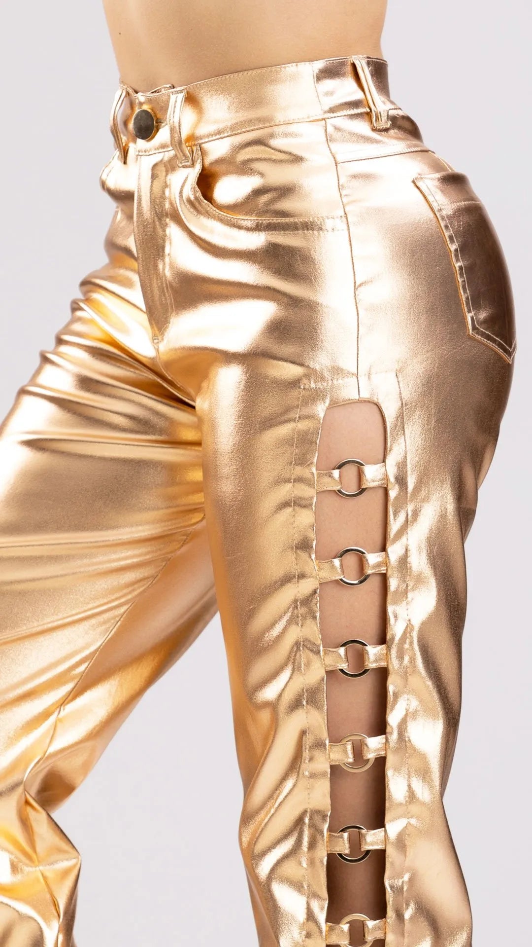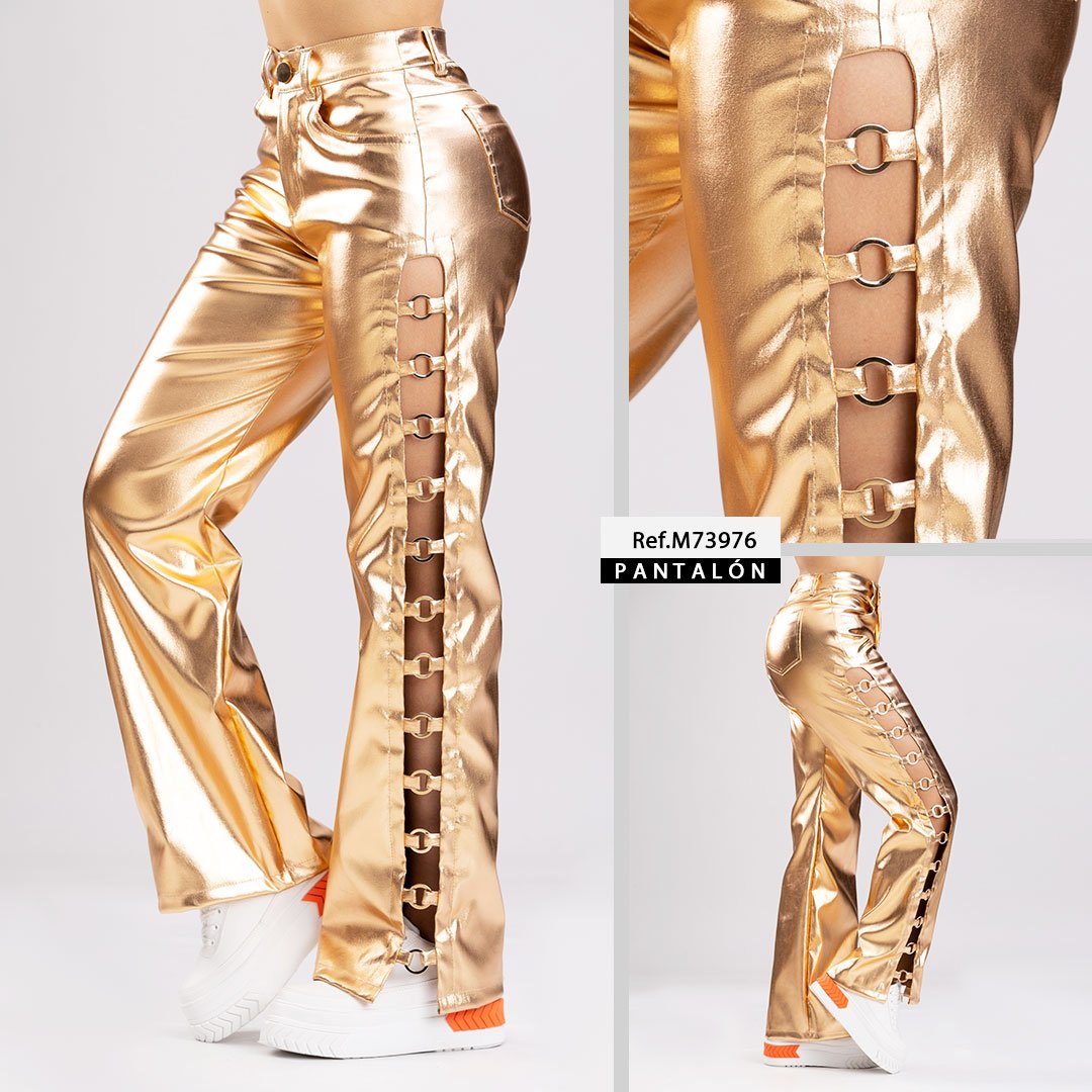 El pantalón metalizado es una prenda versátil que se adapta a diferentes estilos y ocasiones. Puedes lucirlo en eventos formales, fiestas o incluso en looks más casuales y atrevidos. Ha sido diseñado para realzar tu figura y destacar tus mejores atributos, creando una apariencia estilizada y halagadora. Hemos prestado especial atención a los detalles de confección para garantizar un pantalón de alta calidad y un acabado impecable.