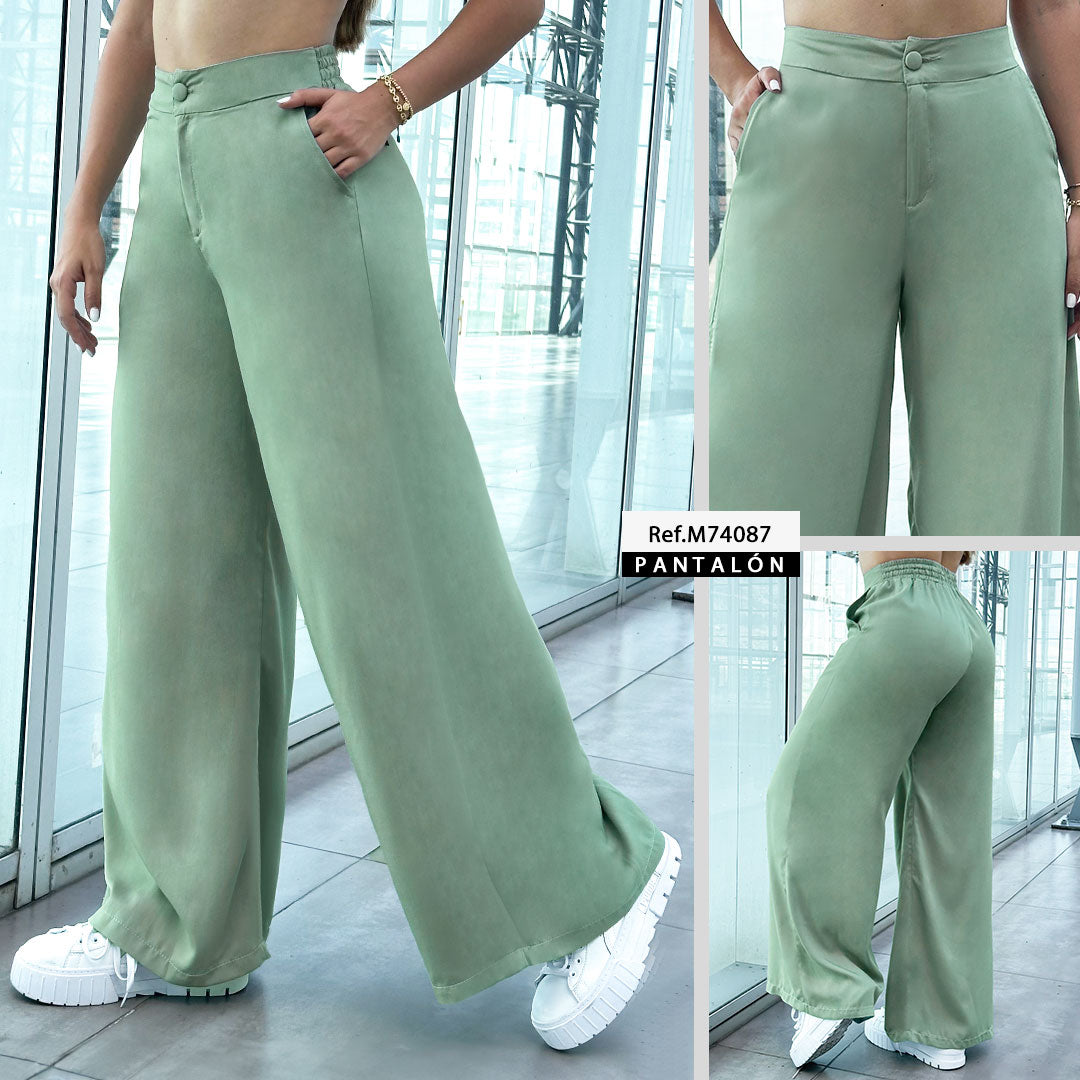 M74087 PANTALÓN CHALIS RAYON VERDE PISTACHO