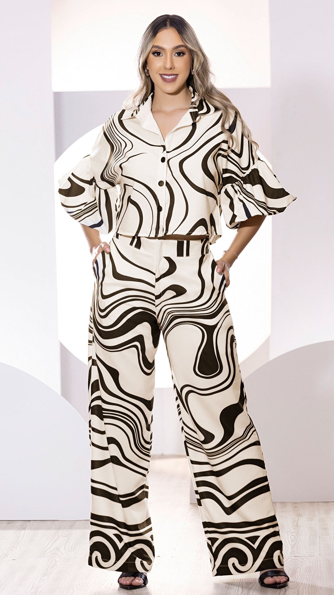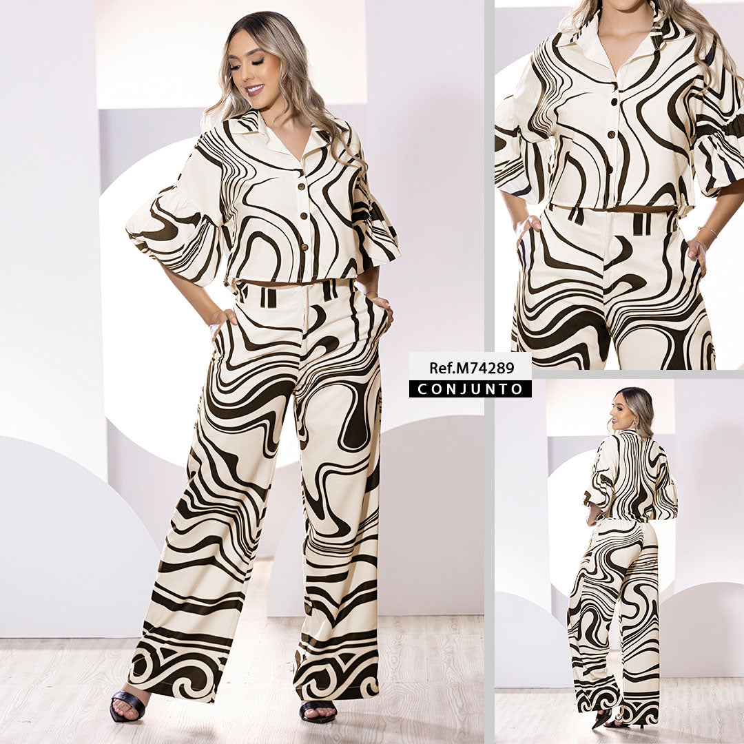 M74289 CONJUNTO FALSO CHALIS ESTAMPADO NEGRO