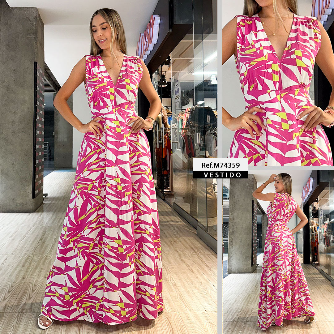 M74359 VESTIDO FALSO CHALIS ESTAMPADO FUCSIA