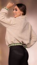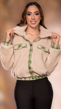 Y3656 CHAQUETA OVEJERA ESTAMPADO VERDE