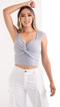 Y3755 BLUSA PLISADA LUREX PLATA