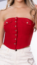 Tela Bengalina - Color: Rojo - Straple - Botones DecorativosNuestras prendas blusa, vestido, conjunto, enterizo, deportivo, falda, y short tienen un proceso de revisión antes de ser enviadas. Sin embargo, revisa bien nuestra política de cambio para que no tengas inconvenientes a la hora de recibir la prenda https://www.xceso.com/cambios-devoluciones/ Nota: Las prendas en promoción o con descuento, no tienen cambio por gusto lo que significa talla, color o referencia