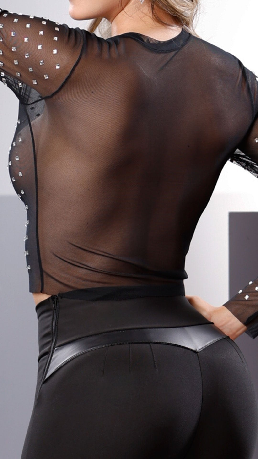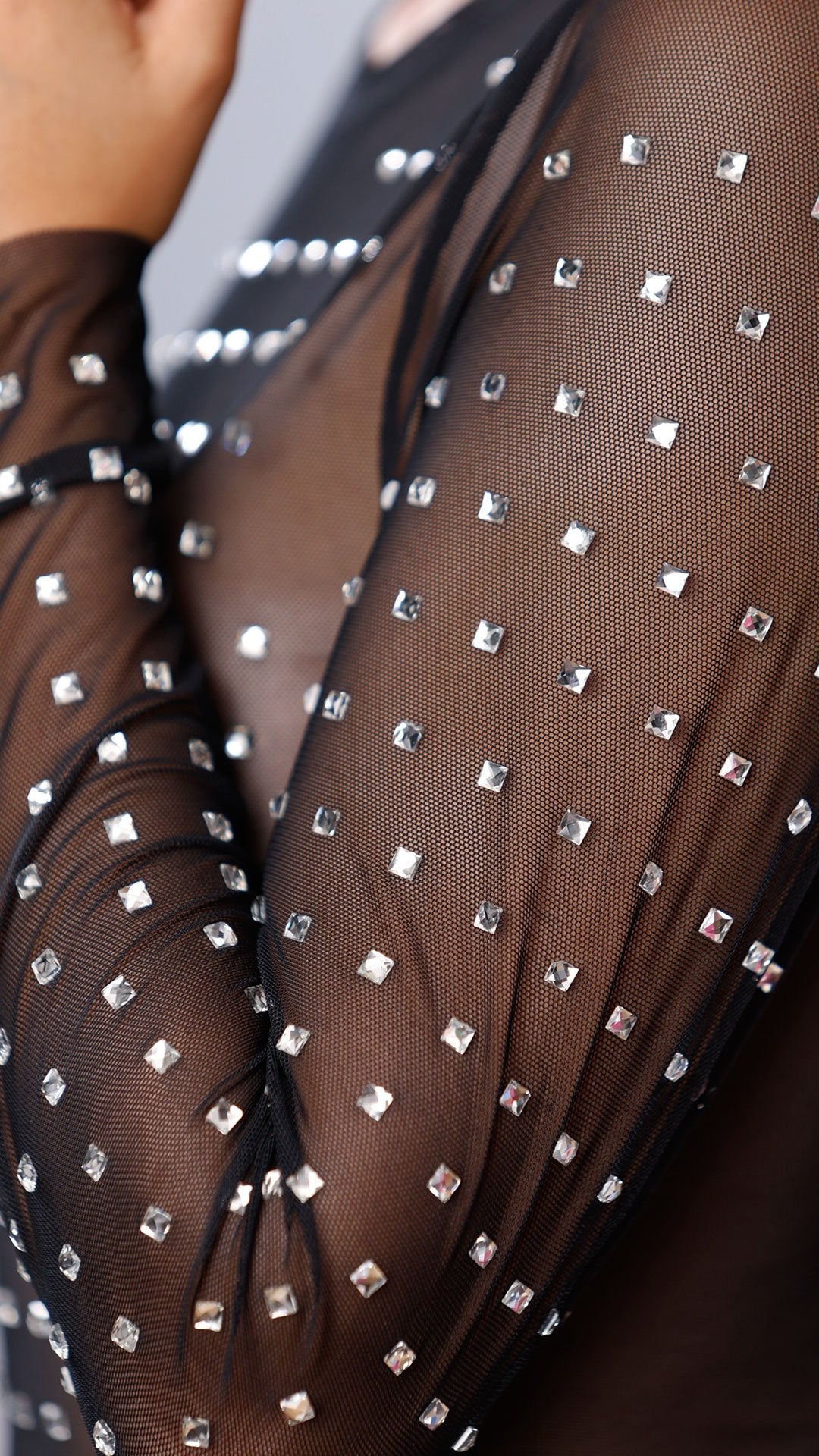 - Con detalle de aplique cuadros piedra cristal en frente y manga